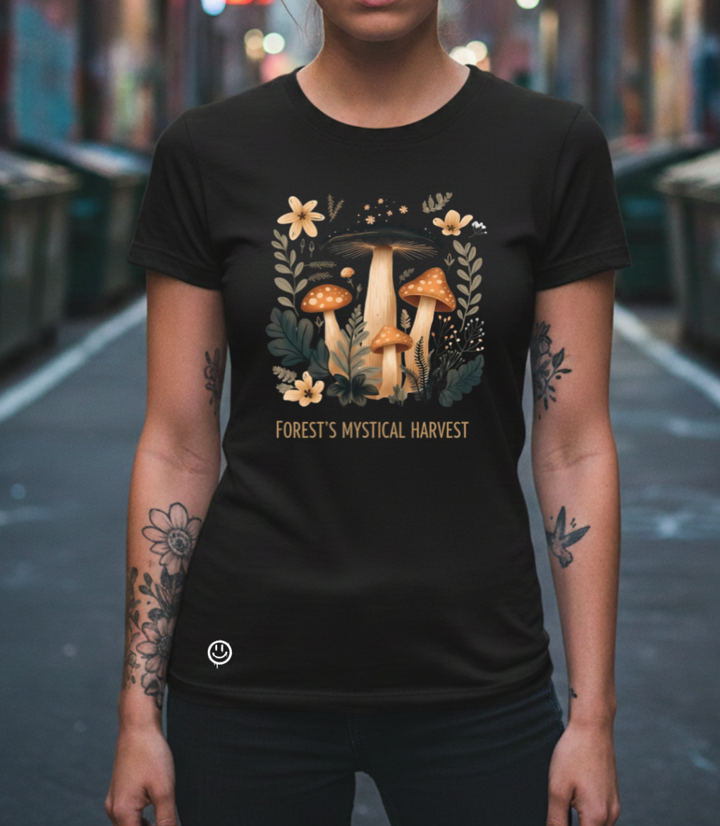 Orgánica, profunda y llena de misterio. Esta pieza captura la esencia de lo que nace en el silencio del bosque, utilizando una ilustración detallada de flora silvestre y hongos místicos que parecen cobrar vida sobre el fondo oscuro. Es la prenda ideal para quienes encuentran belleza en lo desconocido y buscan un estilo que conecte la naturaleza con el espíritu urbano.